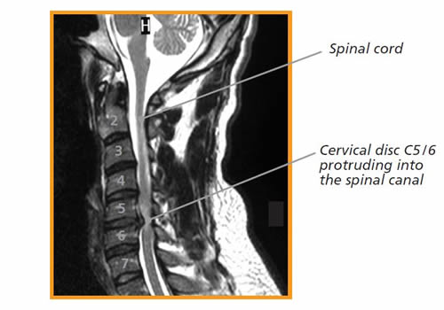 Removal of a herniated or degenerative disc in the neck to relieve spinal cord or nerve pressure.
